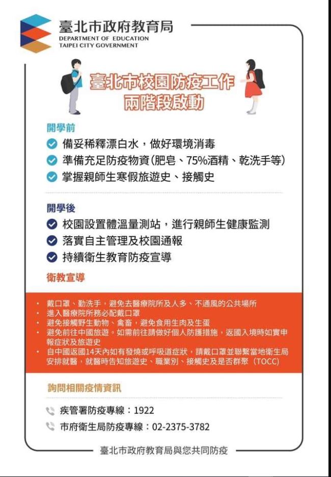 三、為提升於武漢市或鄰近地區從事旅遊、探親、工作、洽商等活動之民眾對該疾病之警覺及認知,請貴機關學校(幼兒園)運用多元管道協助宣導,使民眾具備正確防疫觀念以加強防範,避免疫情對個人健康、國內防疫安全及相關產業造成衝擊。