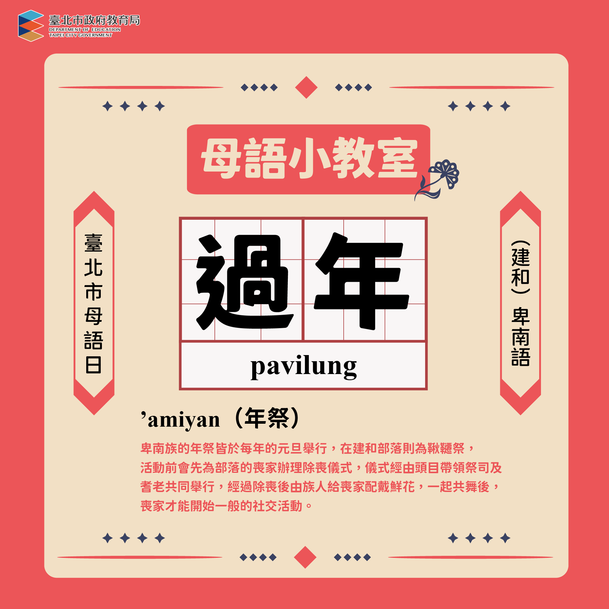臺北世界母語日第二篇~建和 #卑南語 的過年pavilung.
