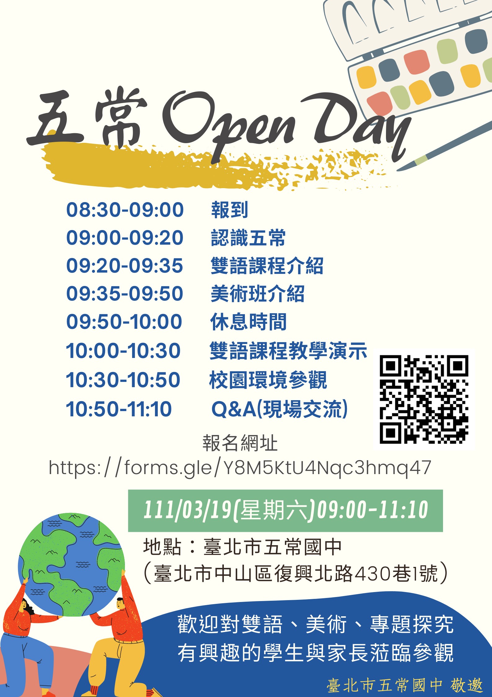 一、依據臺北市立五常國民中學110學年度OPEN DAY實施計畫辦理。