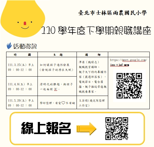 活動報名網址 https://forms.gle/BEoDK4TPaG8ooo436 線上課程活動資訊