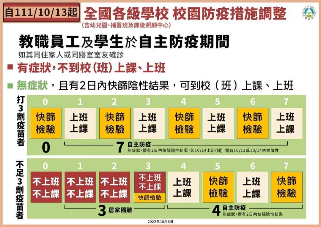 (2)學生於家人確診日起3個月內曾確診過者,可到校上課進行自主防疫。