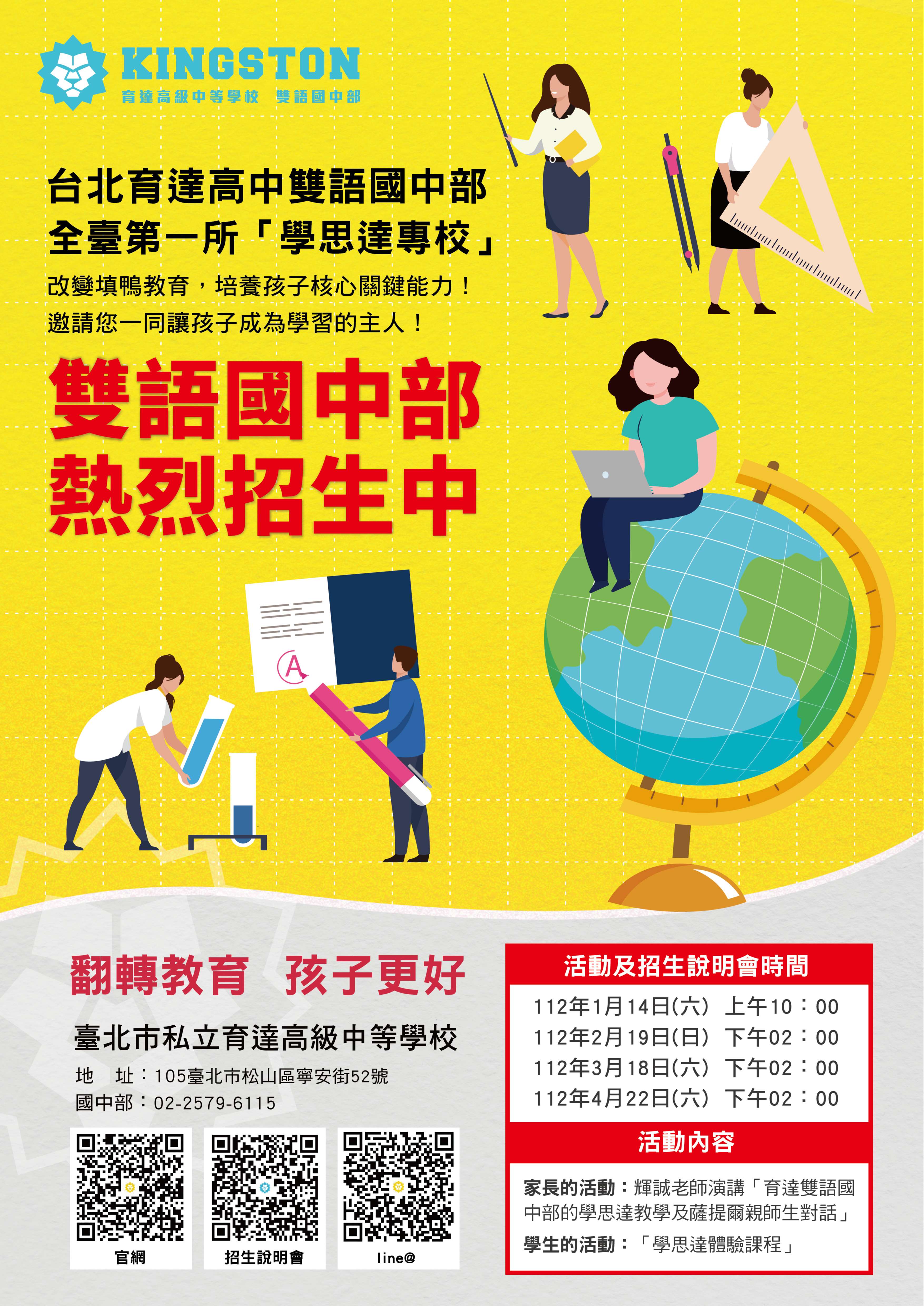 為家長特別邀請學思達創辦人張輝誠老師演講「育達雙語國 中部的學思達教學 薩提爾親師生對話」及為同學們舉辦之 「學思達體驗課程」,