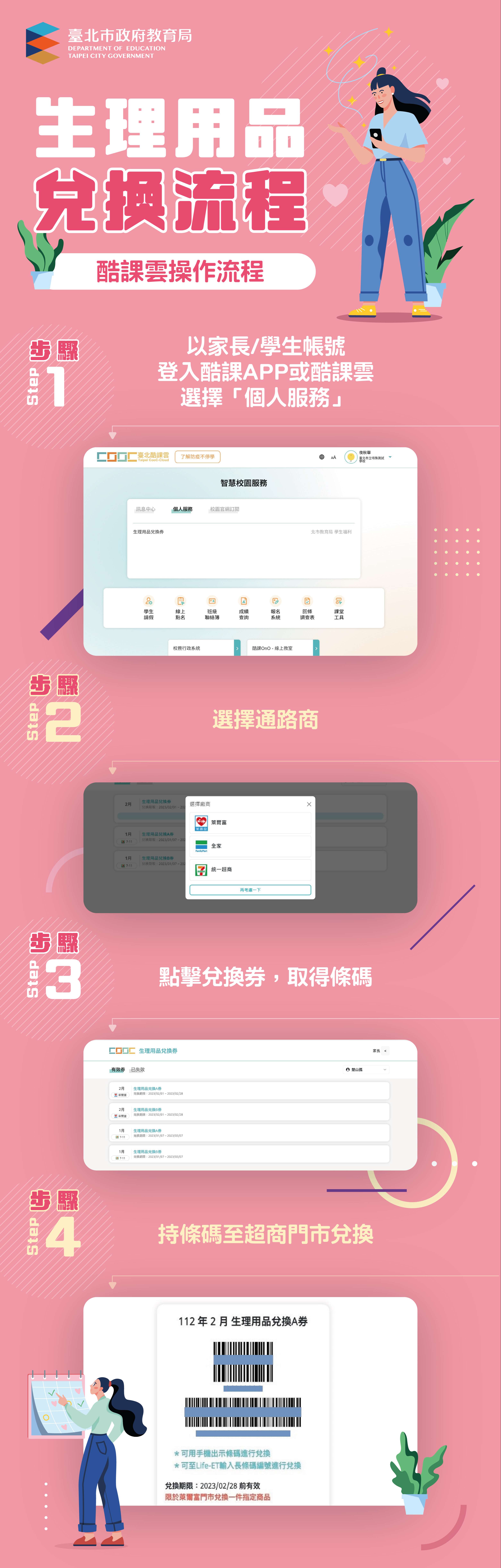 有關臺北市政府教育局補助國小高年級女生生理用品兌換方式說明如附件。