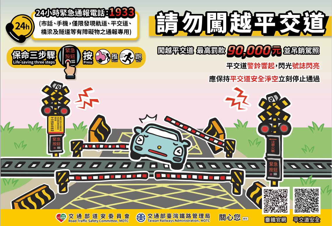 發現「軌道、平交道、橋樑及隧道等有障礙物」,可以手機或市話撥打「1933」通報鐵路局專線人員處理,以避免事故災害。