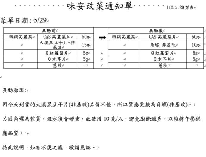 1120529 緊急改菜通知,詳情請見下方訊息: