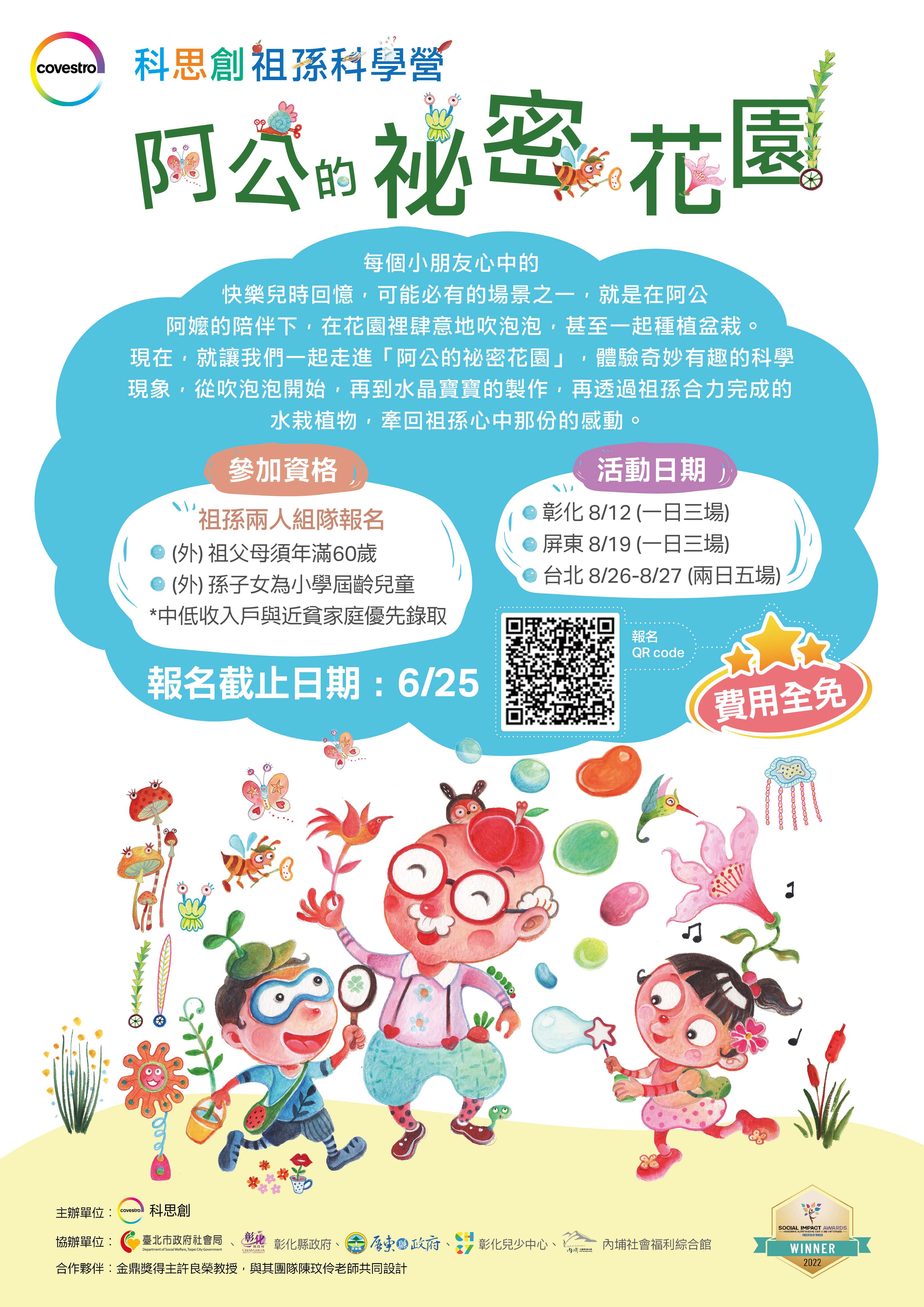 (五)活動內容:將由一位老師主講,並有隨堂志工從旁協助,搭配圖示化實驗步驟手冊,帶領祖孫體驗科學實驗 (吹泡泡、水晶寶寶製作)。
