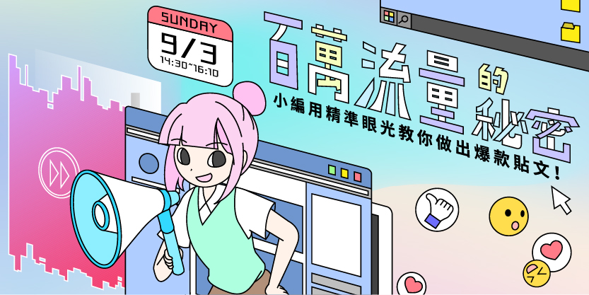 臺北市青少年發展暨家庭教育中心9月3日14:30舉辦達人開講「百萬流量的秘密?小編用精準眼光教你做出爆款貼文!」,由王靖雯老師與您分享她踏上成為社群小編的心路歷程,以及過程中的體驗。活動免費,詳見青發家教中心官網。