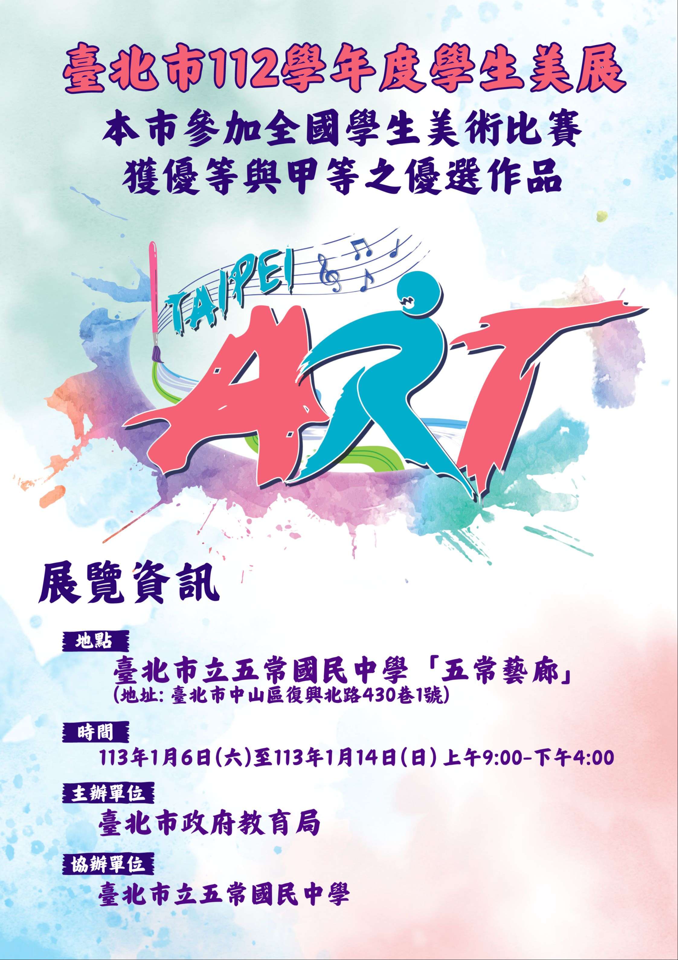 (一)展出地點:臺北市立五常國民中學「五常藝廊」(地址: 臺北市中山區復興北路430巷1號)。