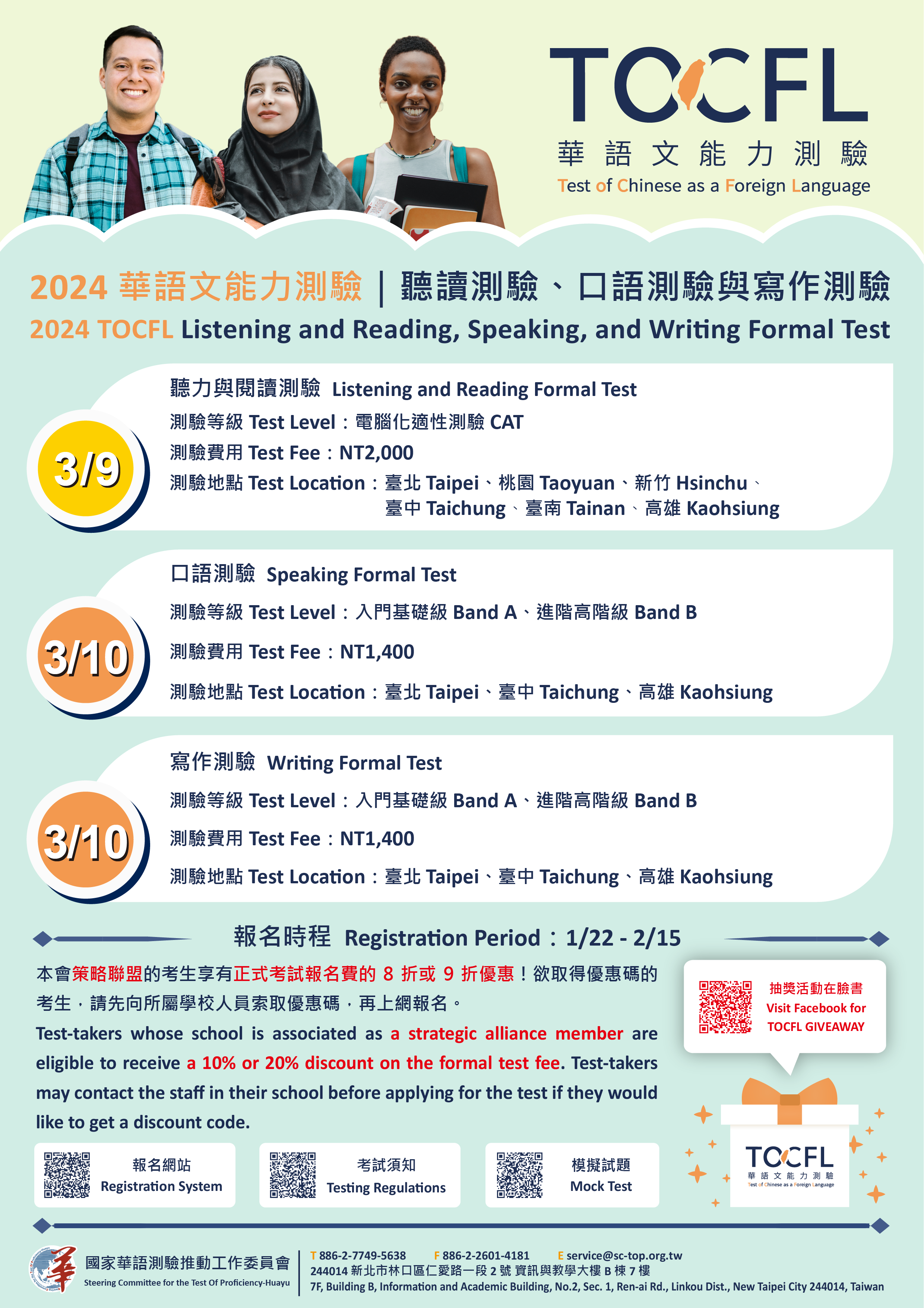 國家華語測驗推動工作委員會「華語文能力測驗」 113年3月正式考試事宜