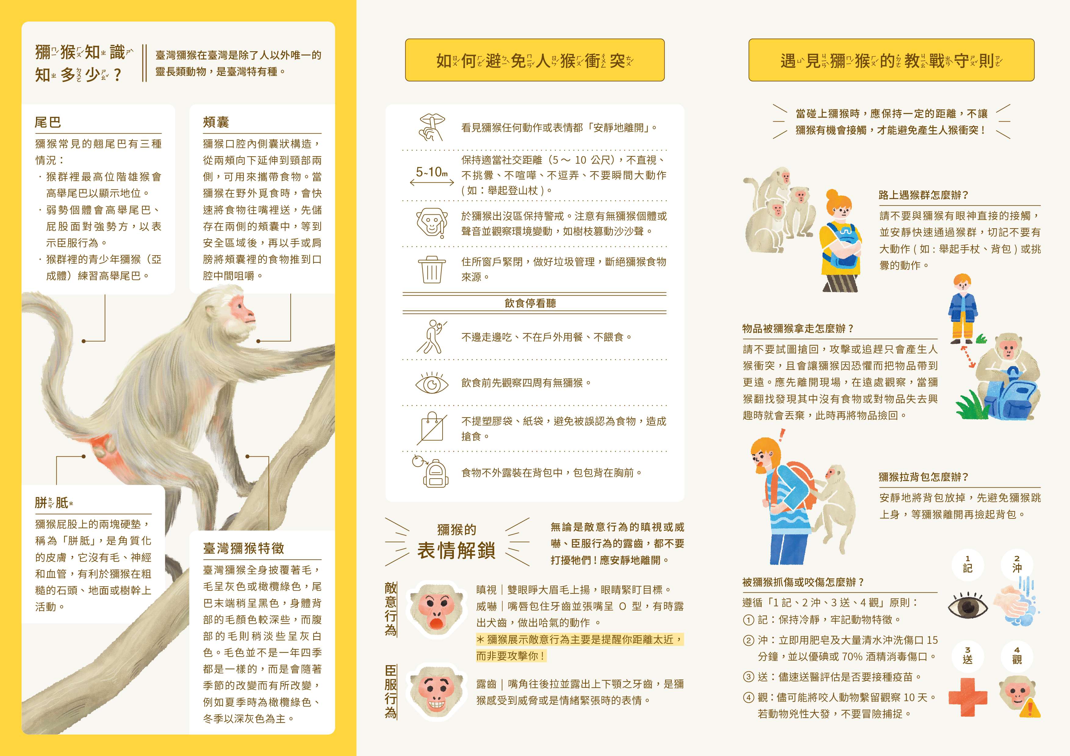 一、基於近年來本市屢有臺灣獼猴滋擾民眾居家安寧與安全、或於農地出沒衍生農損等事件,為避免人猴衝突問題擴大,兼以促進民眾認識臺灣獼猴生態習性與遭遇時之因應對策,本處爰委託財團法人農業科技研究院規劃旨揭文宣之電子檔,歡迎自行應用於教育宣導用途。