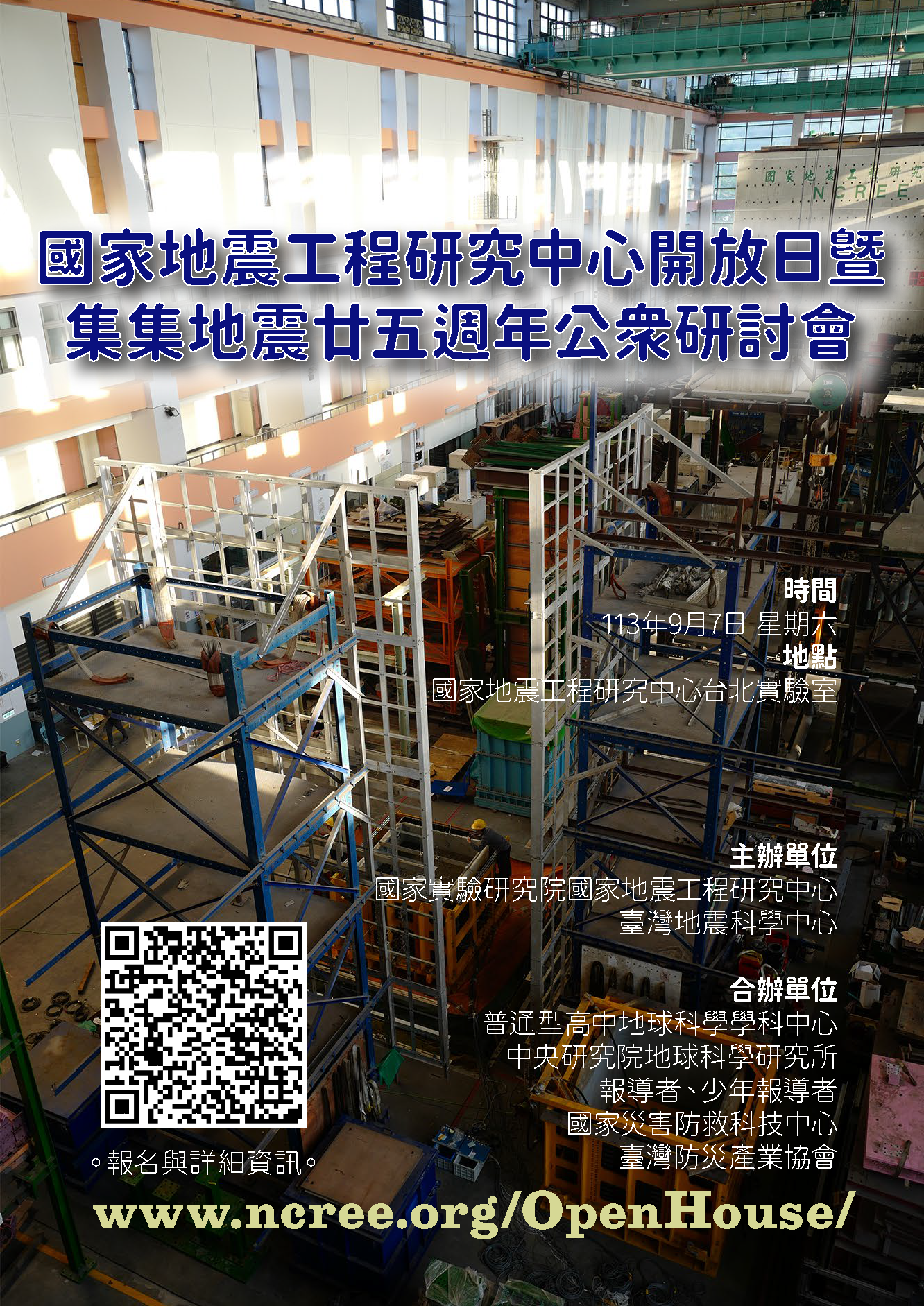 由國家地震工程研究中心與臺灣地震科學中心主 辦,國教署普通型高中地球科學學科中心、中央研究院地 球科學研究所、報導者、少年報導者、國家災害防救科技 中心、臺灣防災產業協會合辦。