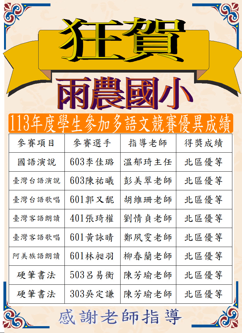 狂賀!本校學生參加113年度臺北市多語文競賽榮獲佳績!