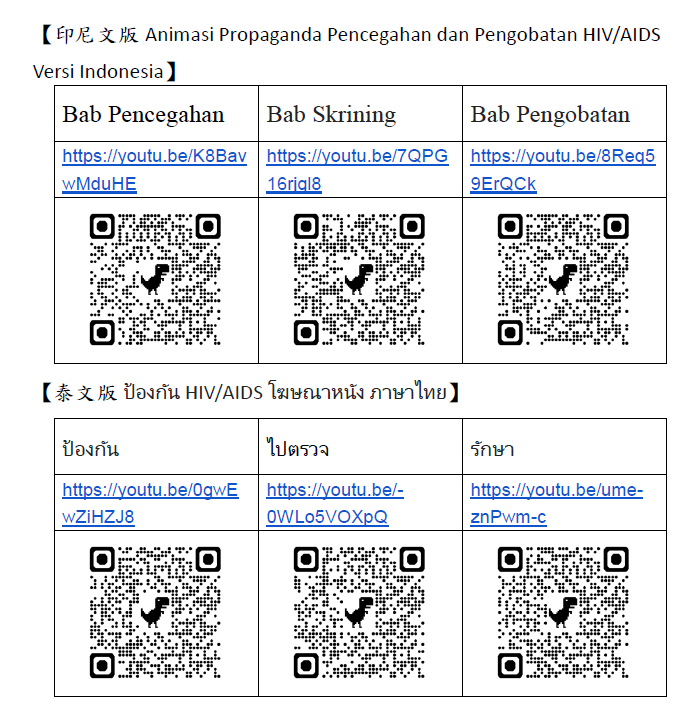 二、旨揭影片係衛生福利部疾病管制署與財團法人歐巴尼紀念 基金會共同製作,主題包含愛滋預防、篩檢及治療,共3部 影片,每部影片各約4—5分鐘,分別有中文、英文、印尼 文、越南文、泰文之多國語言版。