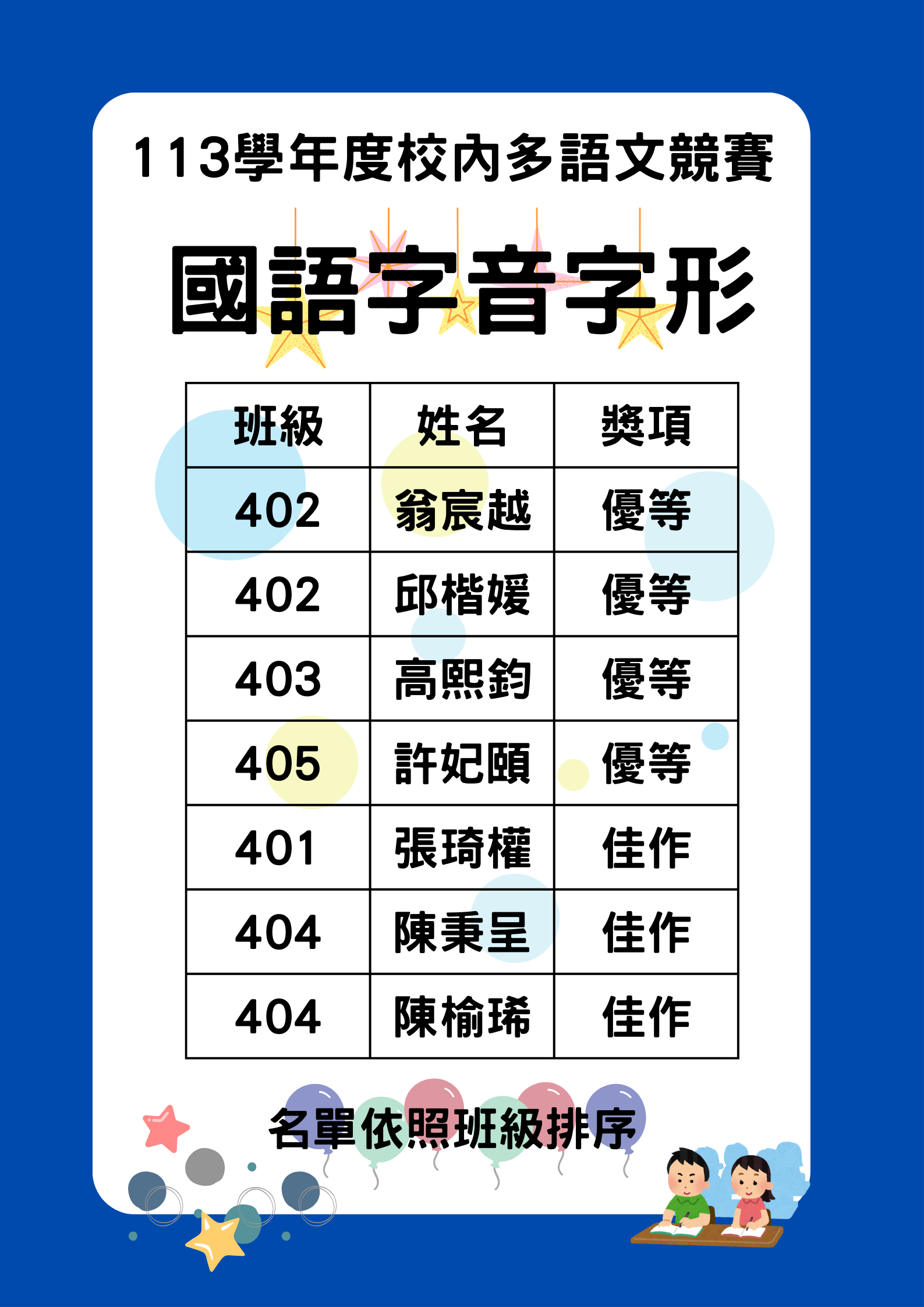 恭喜以上獲獎同學,感謝老師的指導與鼓勵。