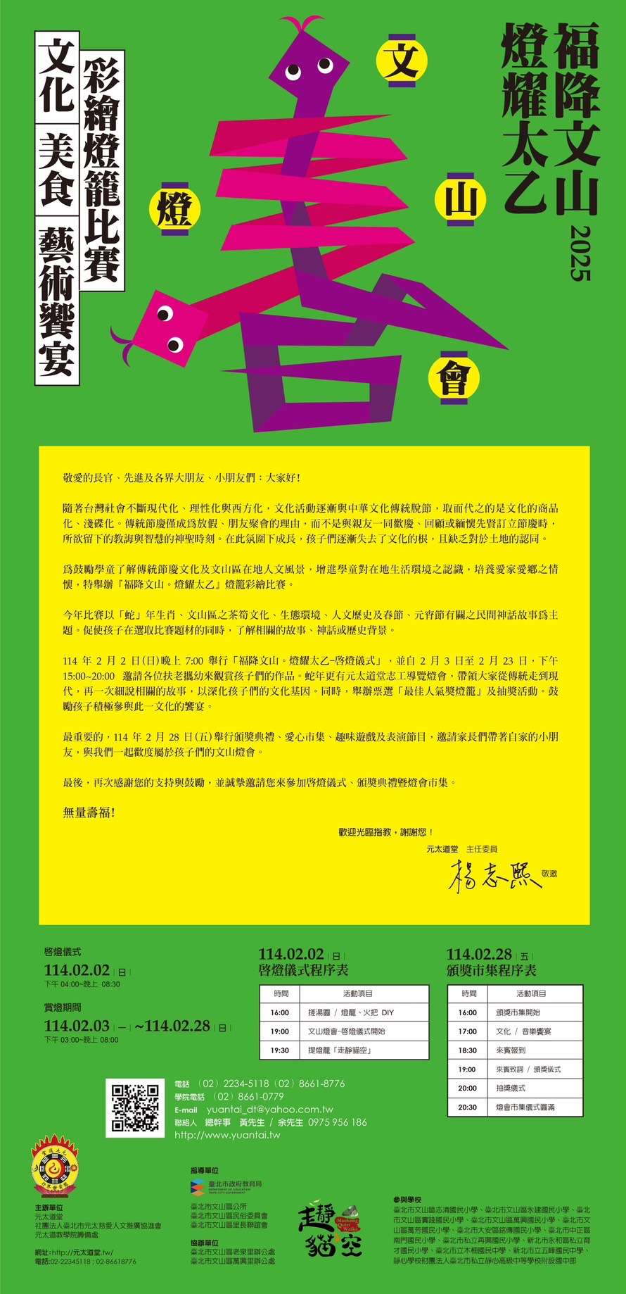 (一)點燈儀式:114年2月2日下午4時至6時,屆時將安排傳統