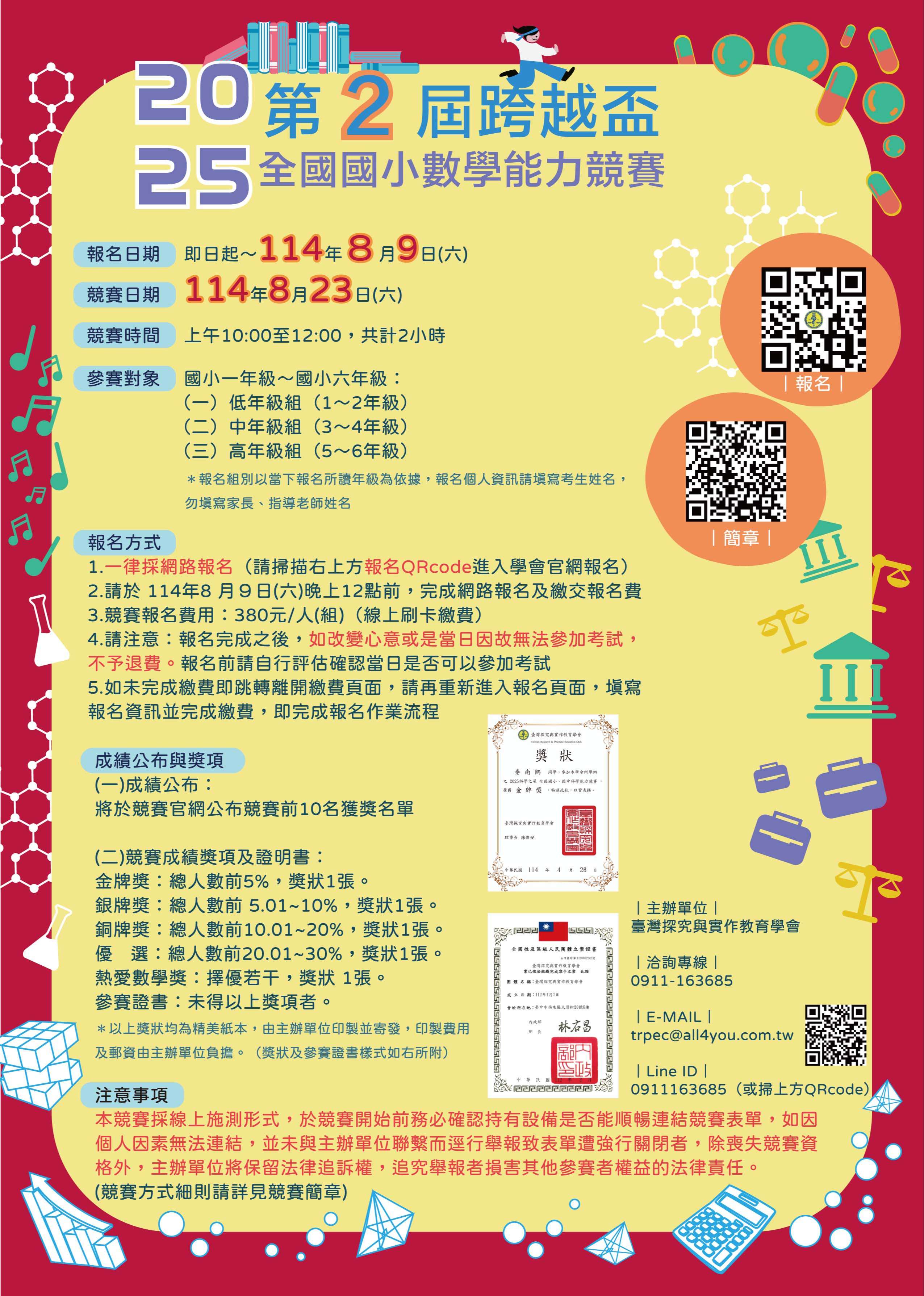 三、競賽日期:114年8月23日(六)上午10:00~12:00。