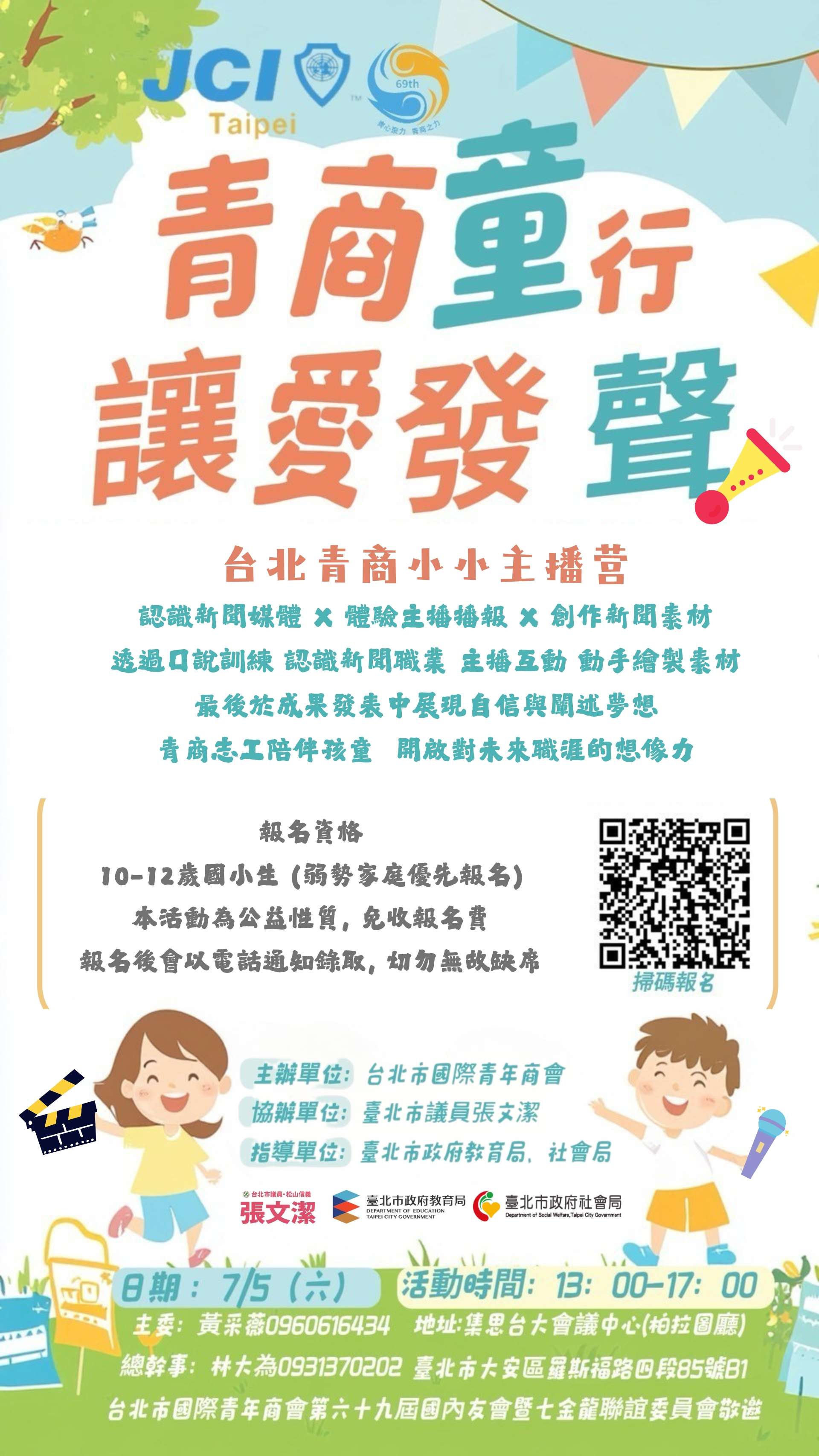 函轉台北市國際青年商會辦理之「青商『童』行‧讓 『愛』發生」活動資訊,請協助公告並鼓勵學生參加,請查照。