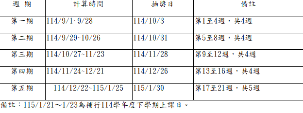 (2)加碼獎項:上述學童由系統自動納入抽獎資格,加碼贈送【四方農場套票(4張)】,中獎名單公布於「鮮奶週報」專區。抽獎時間規劃如下表。