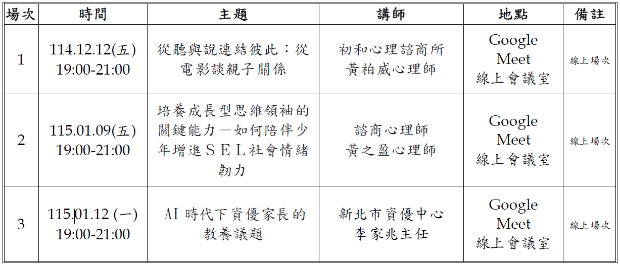 一、為增進資優生家長對資優生特質、親職教養策略與生涯輔導知能之瞭解,資優教育資源中心特辦理旨揭講座。