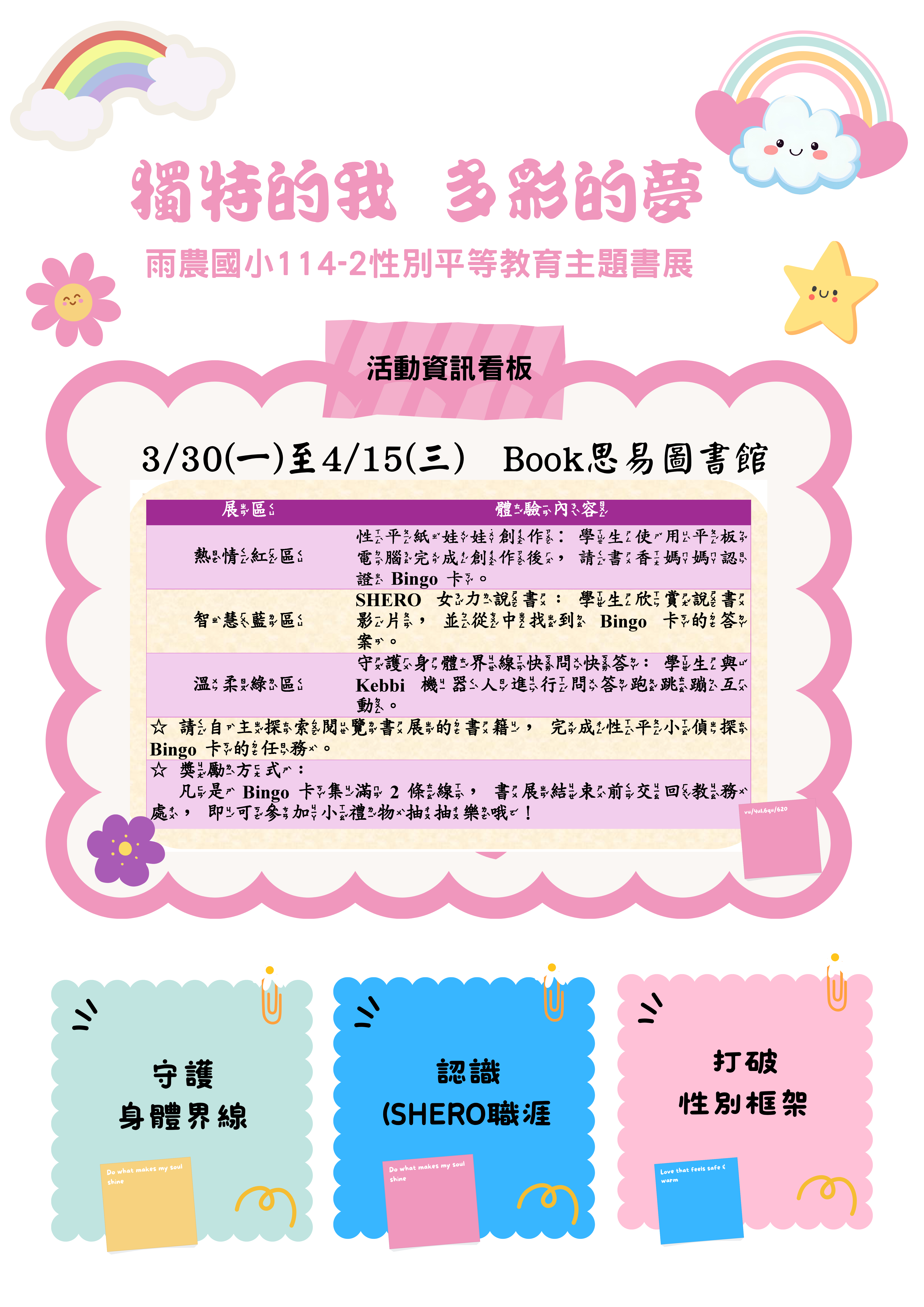 「獨特的我,多彩的夢」性別平等教育主題書展暨導覽活動計畫